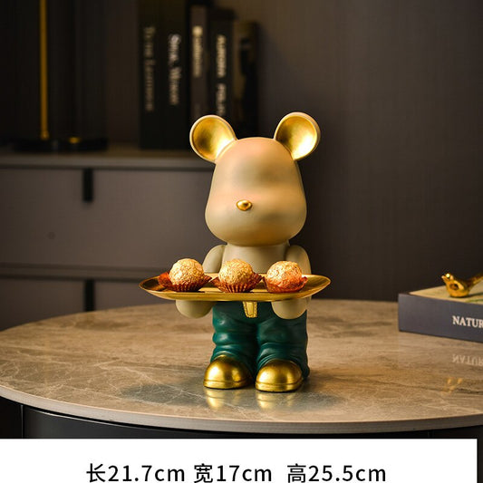 Nordic Creative Bear Storage Tray Sculpture Figurines for Interior Light Luxury Living Room Decoration Key Disk Candy Holder