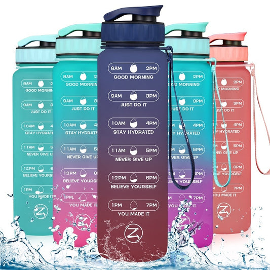 ZOMAKE 32oz Motivational Water Sport Bottle with Time Marker Leakproof BPA Free Fruit 1 Liter Travel Kettle Drinking Water Bottl