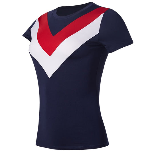 Women Shirt Yoga Short Sleeve Sports Tops Spliced Colors Activewear Quick Dry Running Workout Sportswear Plus Size Fast Delivery