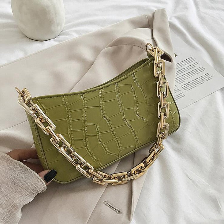 2022 Fashion Chain Shoulder Bag Luxury Handbags And Purses Designer Armpit Bags For Women Solid Stone Pattern Lady Hand Bag