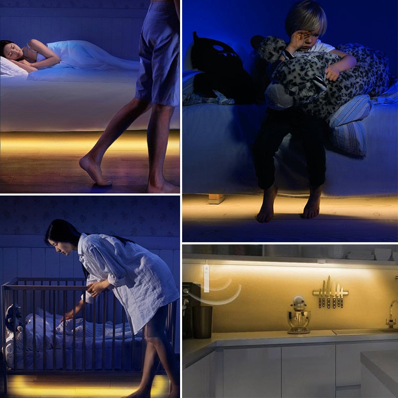 3M 2M 1M LED Smart Stair Light Under Bed Light PIR Sensor Detector Control Intelligent Wall Lamp Cupboard Wardrobe Kitchen Light