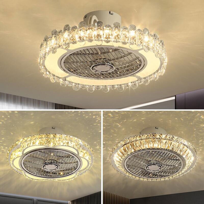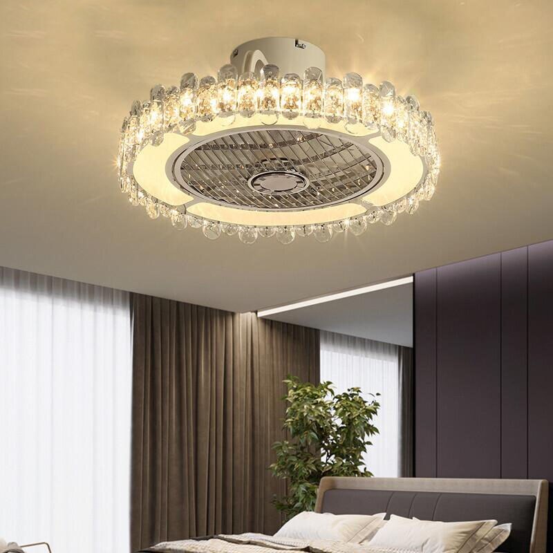 Art Led Celing Fan Pendant Lamp Light Chandelier Smart APP Remote Control Restaurant Bedroom Study Nordic Crystal