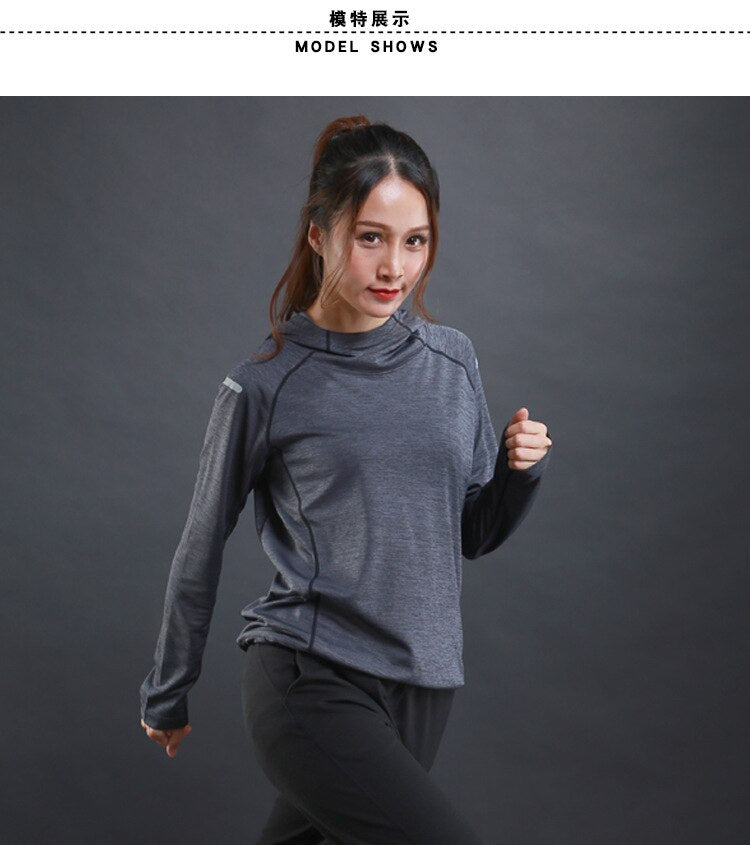 Autumn thin Women Running T Shirts Gym fitness Long Sleeves sweatshirts Quick Dry Training Breathable Hood Sports Yoga Clothing