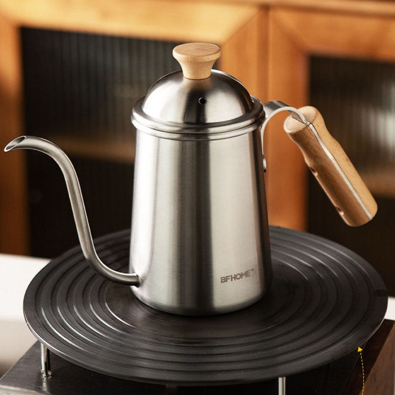 Coffee Hand Brewing Pot Wooden Handle 304 Non-stick Coat Food Grade Stainless Steel Fine Mouth Brew Pot Outdoor Coffee Make Tool
