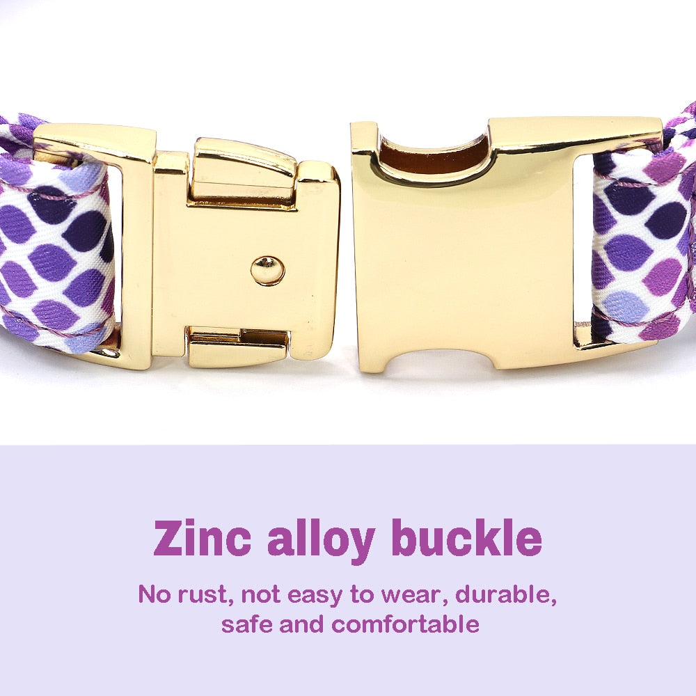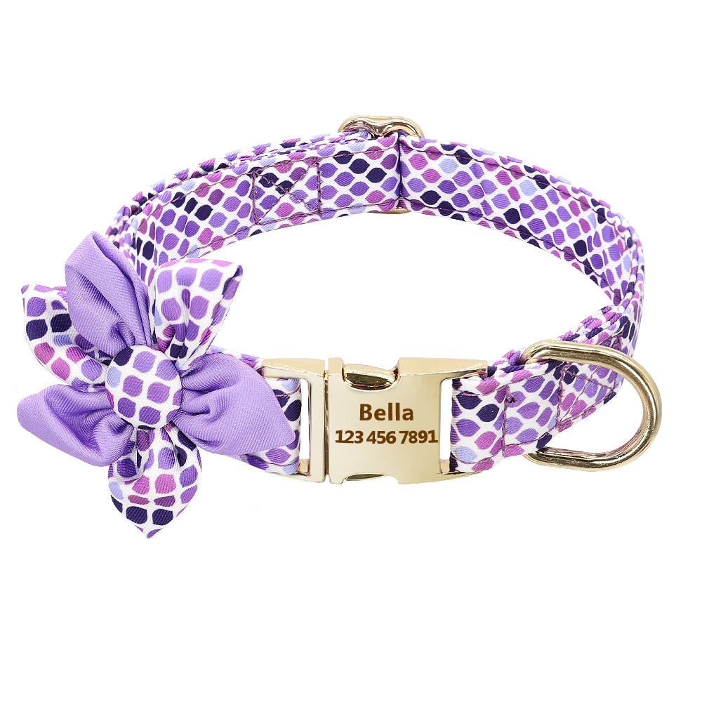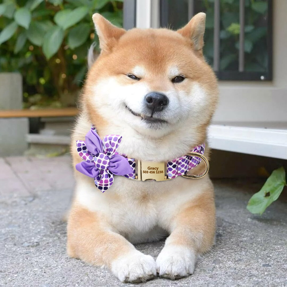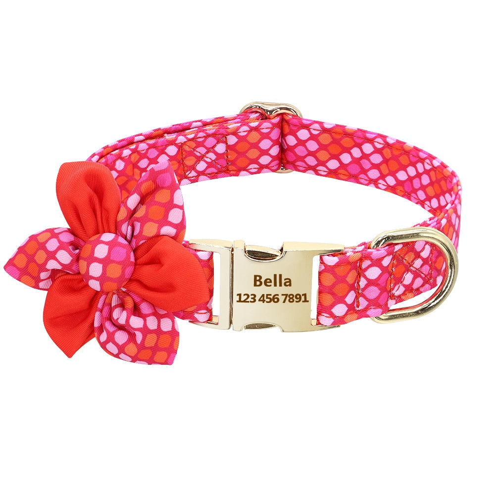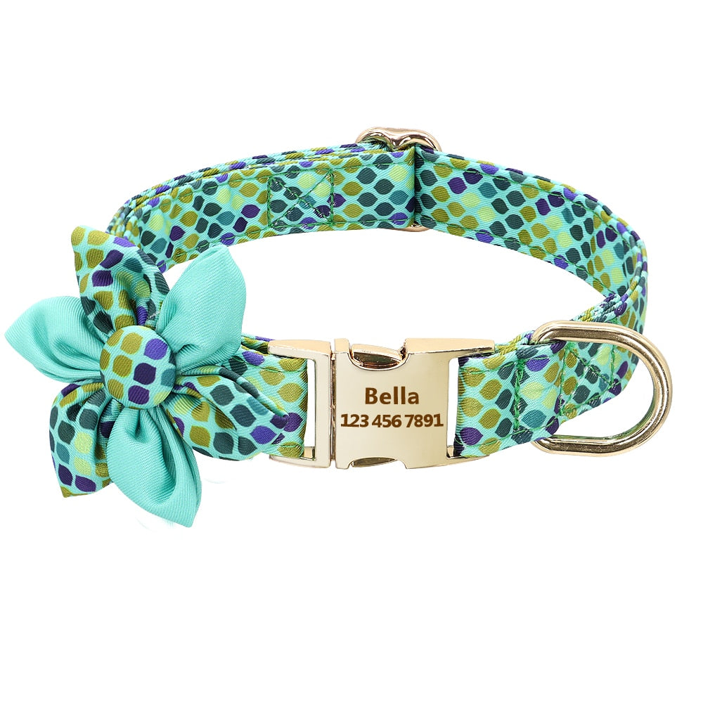 Custom Engraved Dog Collar Nylon Print Dog Collars Personalized Pet ID Tag Metal Buckle With Flower Small Medium Large Dogs