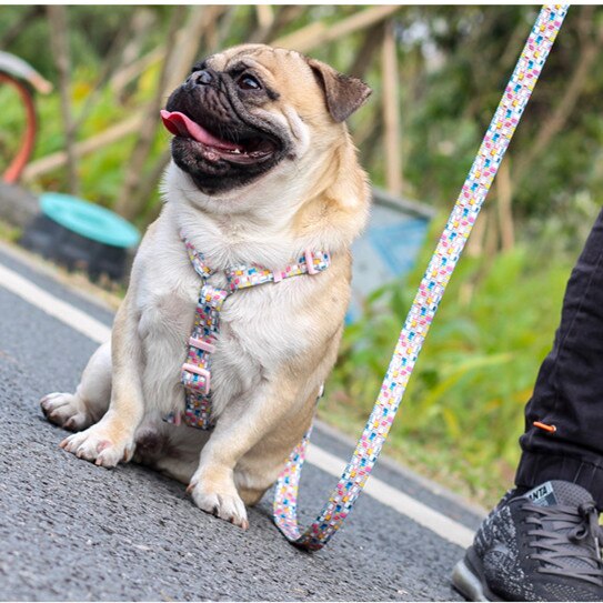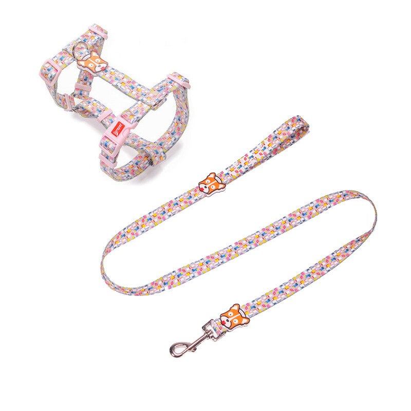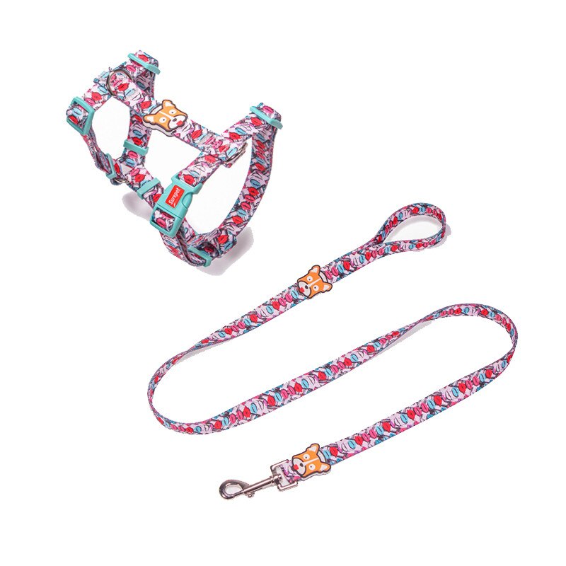 Dog Collars Fashion Designer Print Non-Escape Nylon Dog Harness Breakaway Quick Release Pet Harness Vest Walking Lead Adjustable