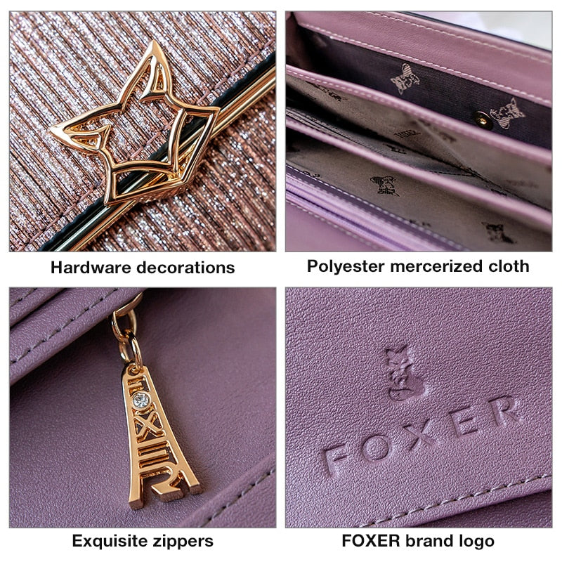FOXER Brand Women Split Leather Wallets Female Clutch Bag Fashion Coins Card Holder Luxury Purse for Ladies Women's Long Wallet