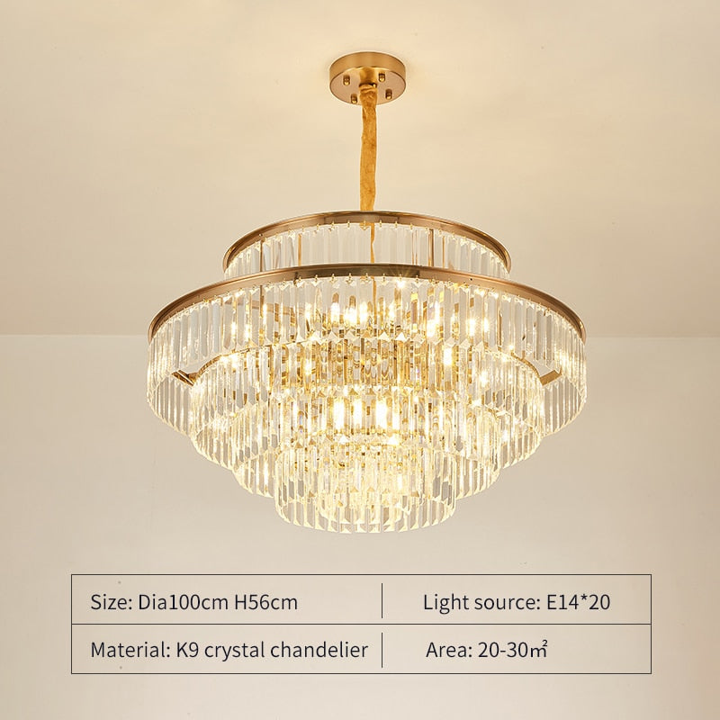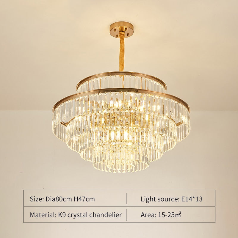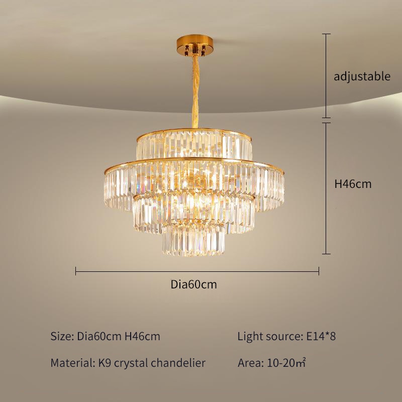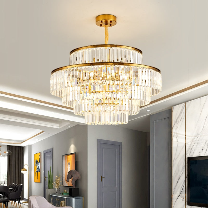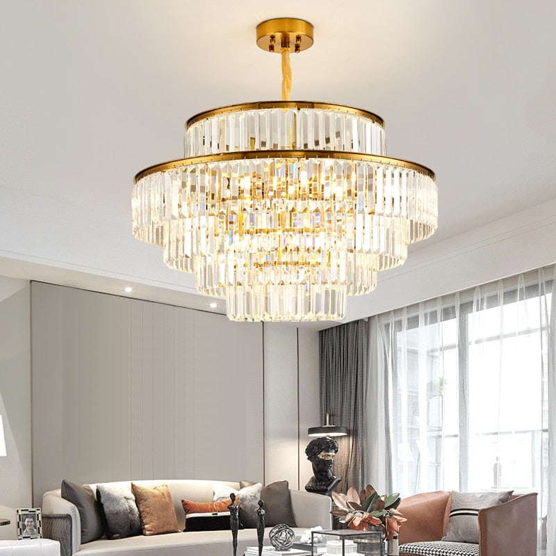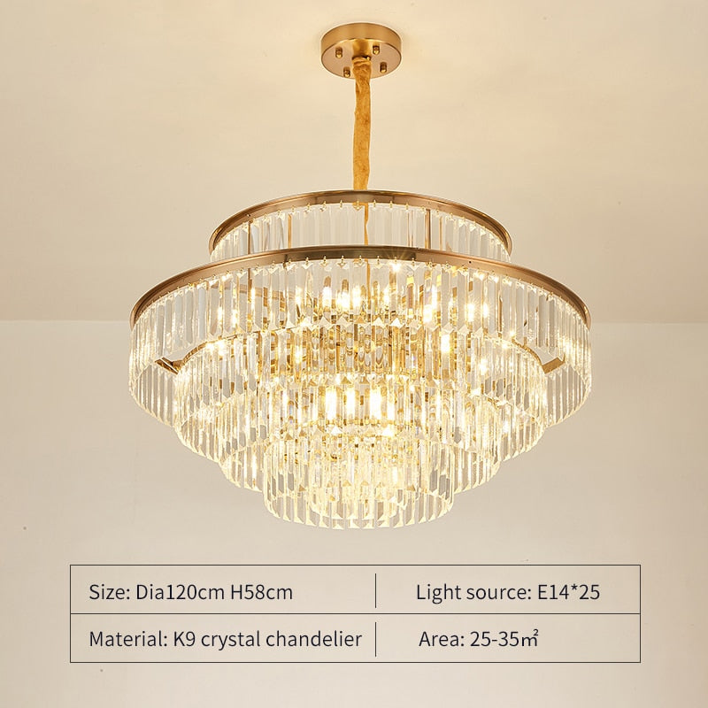 FSS Modern LED Luxury Round Golden Crystal Chandelier Lighting For Living Room Dining Room Lamp Bedroom Indoor Light Fixtures