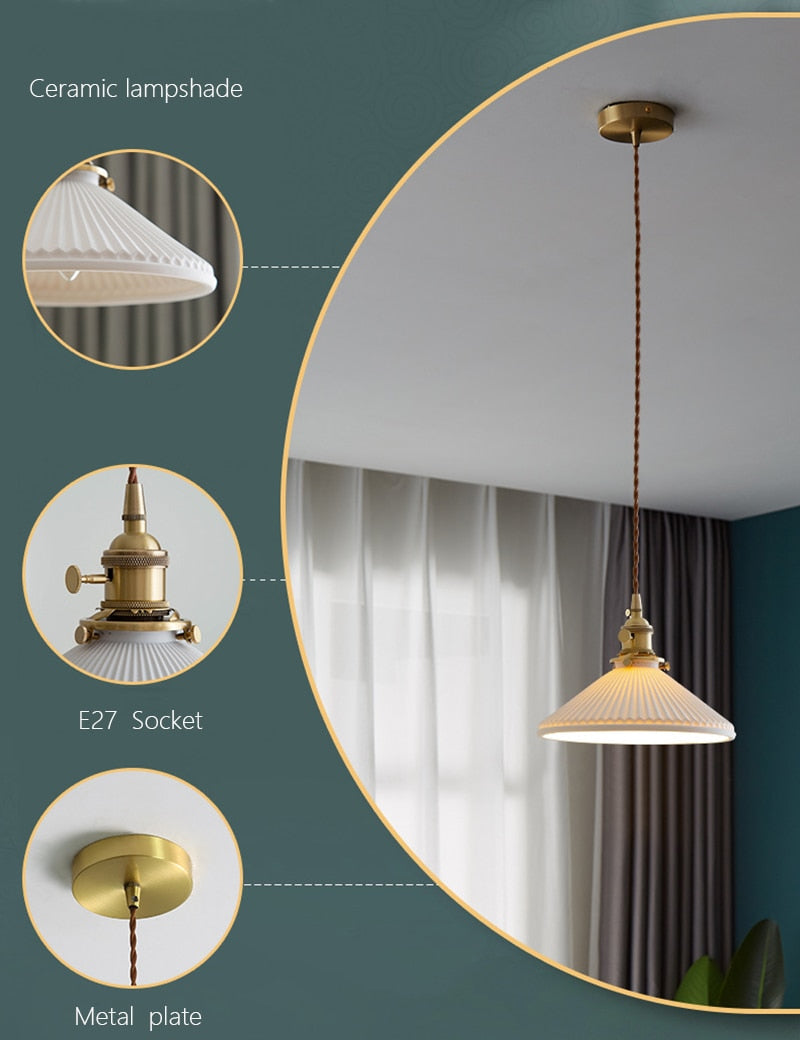 Japanese Ceramic Chandelier Lighting for Kitchen Dining Room Restaurant Bar Bedside Nordic Luxury Led Chandelier Ceiling Lamp