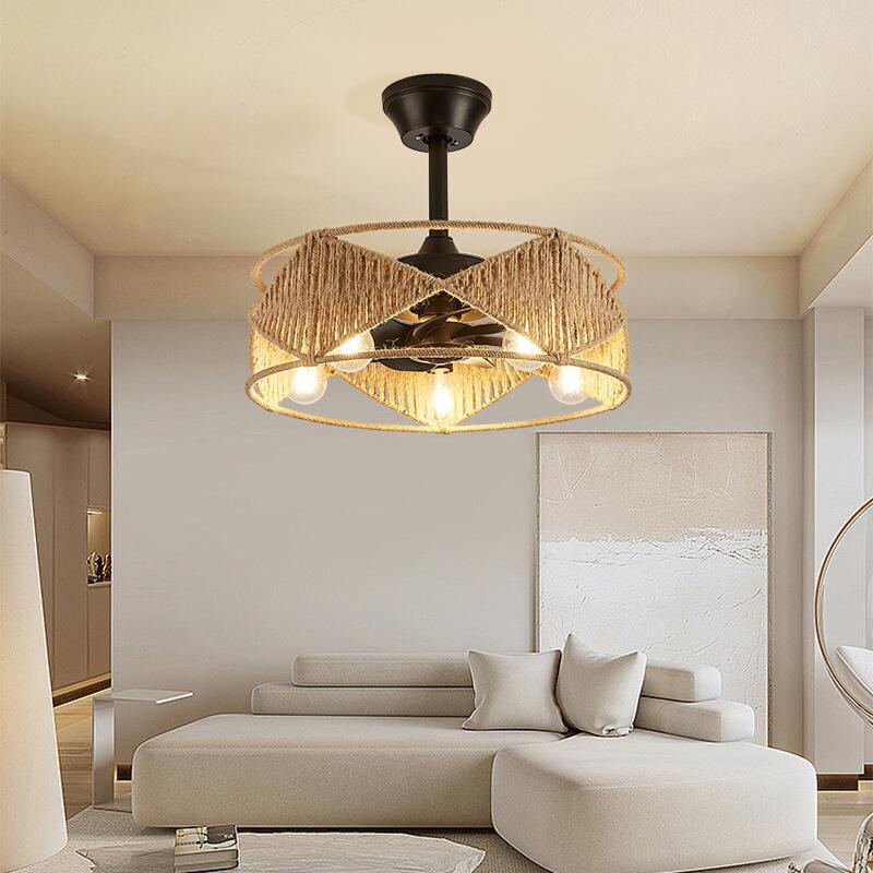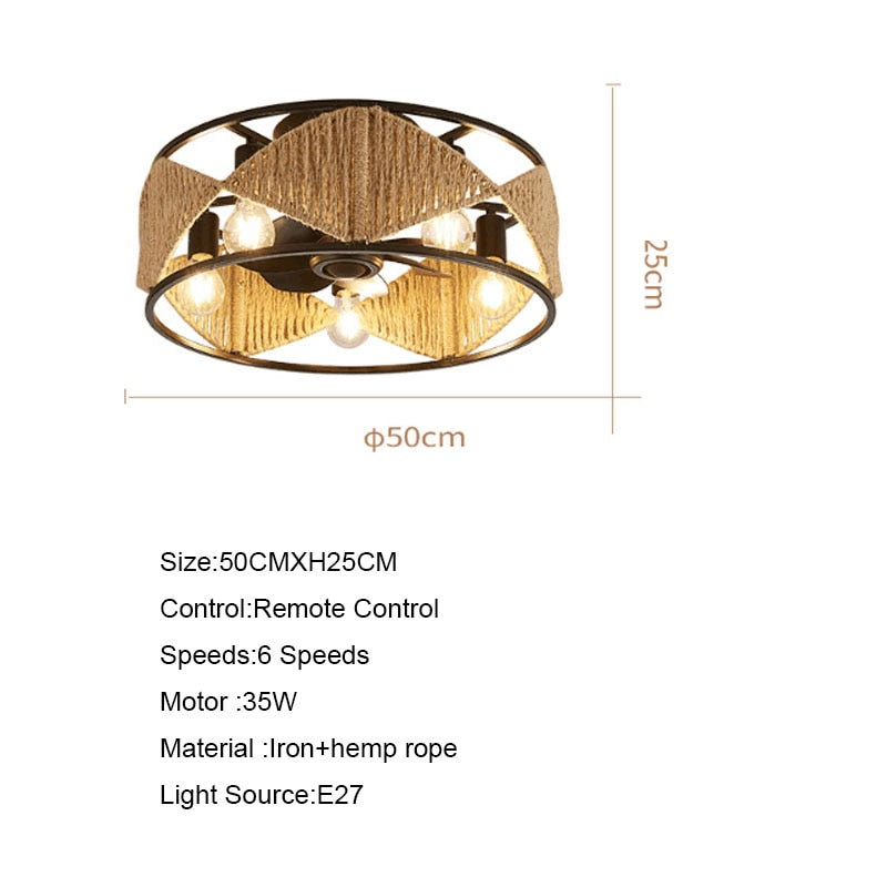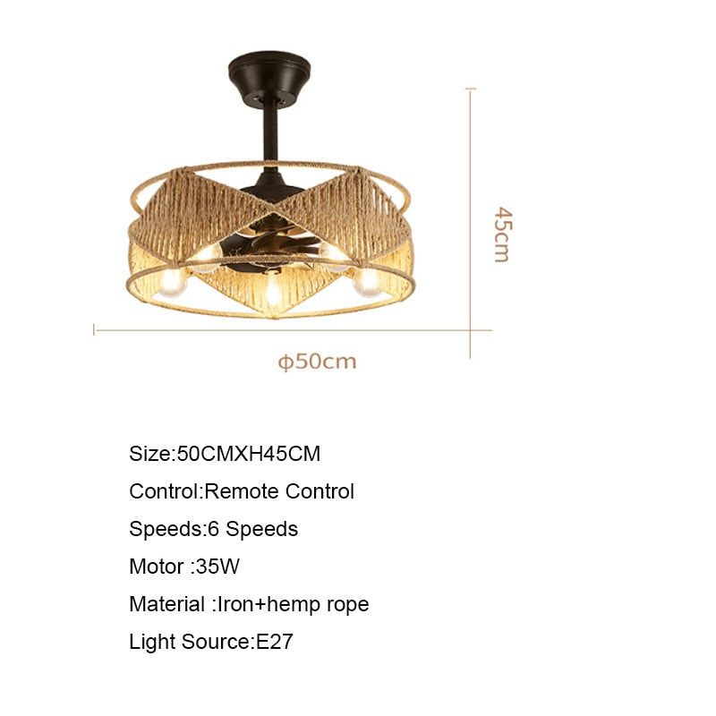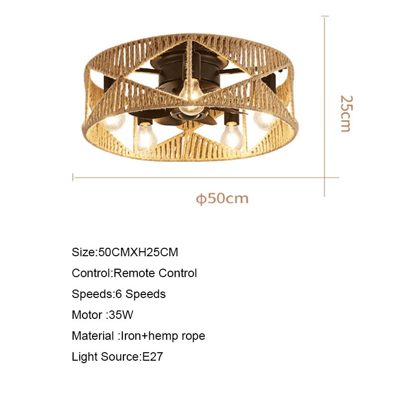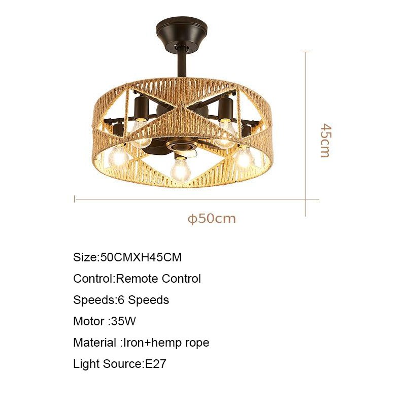 Lamp Led Celing Fan Pendant Light Chandelier Art American Iron Industrial Wind Hemp Rope Restaurant Bedroom Hall Coffee Shop