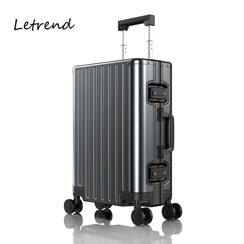 LeTrend Luxurious Rolling Luggage 100% Aluminium Trolley Solid Travel Bag 20/24 Inch Women Boarding Carry On Suitcases Trunk