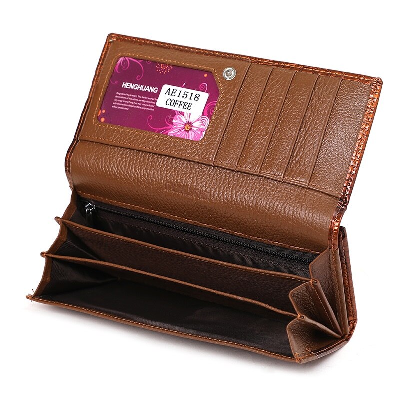 Long Women Genuine Leather Wallet Cow Leather Female Purse Luxury Brand Women's Leather Wallets Alligator Pattern Ladies Purses