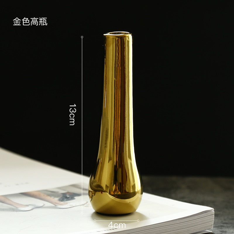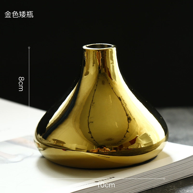 Luxury Gold Charger Ceramic Vase Dried Flower Small Bottle Table Decoration Arrange Flowers Film Props Nodic