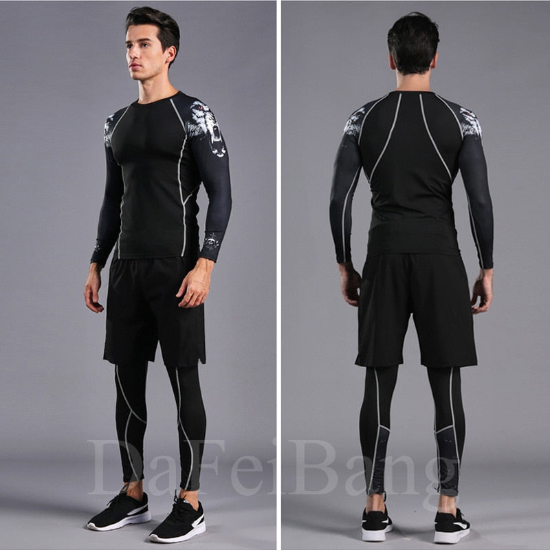 Man Compression Sports Suit Quick Drying Perspiration Fitness Training MMA Kit Rashguard Male Sportswear Jogging Running Clothes