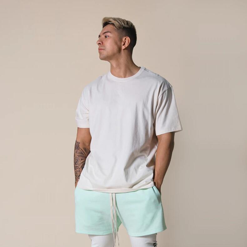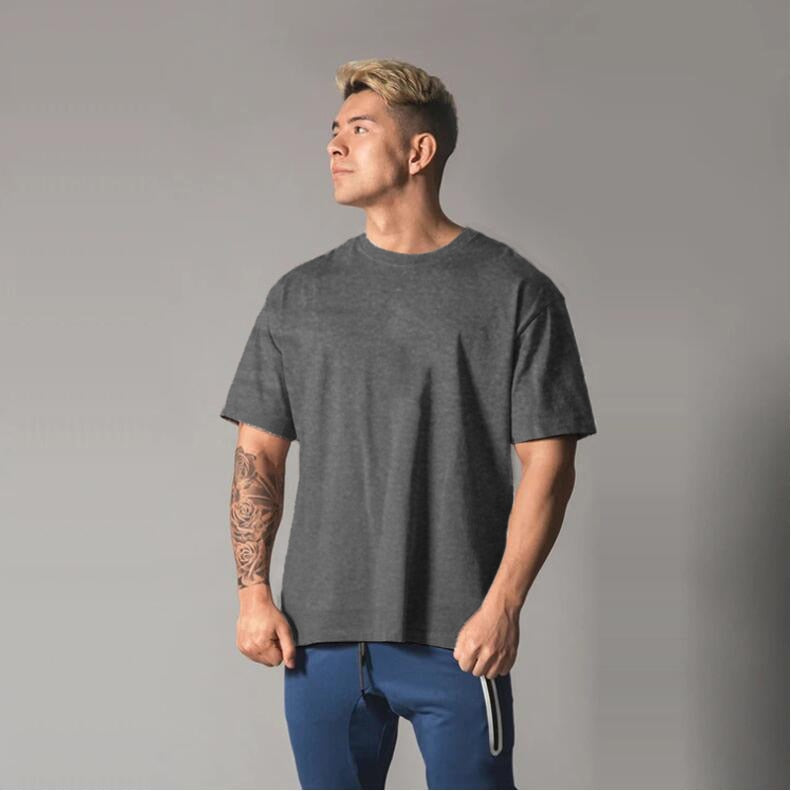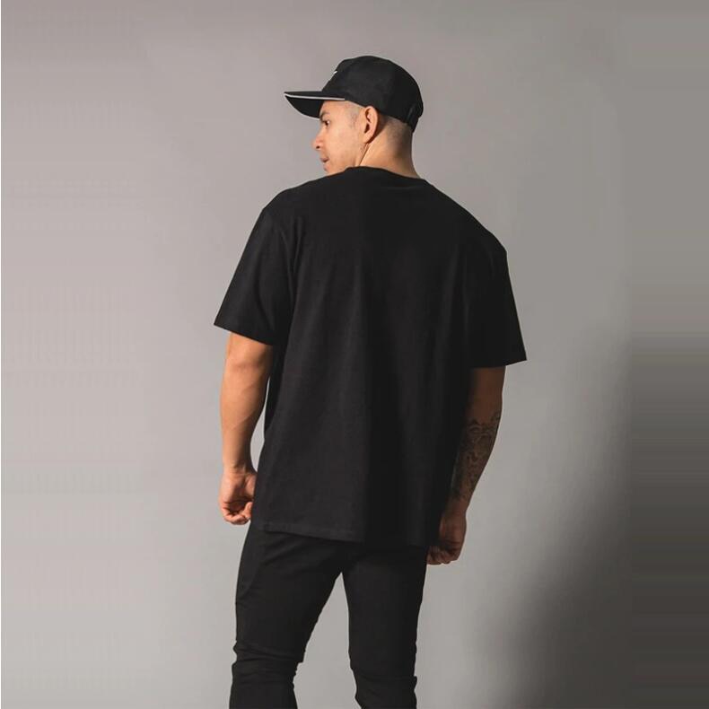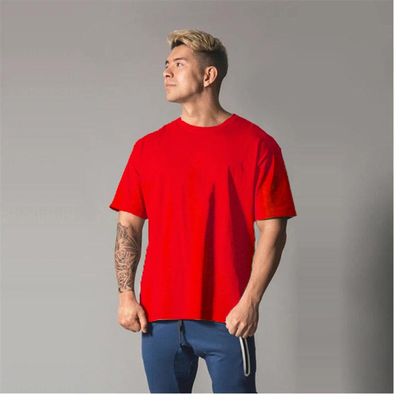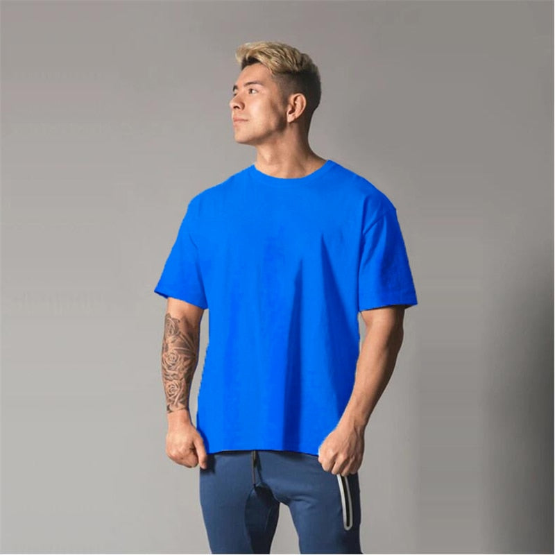 Men's Oversized T shirt Solid Color Gym Clothing Bodybuilding Fitness Loose Sportswear T-shirt Streetwear Hip-Hop Tshirt