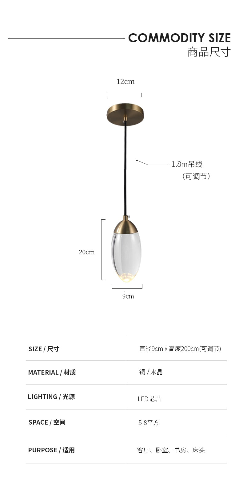Modern Crystal ball LED Pendant lights Nordic Copper lighting bedroom bedside single head lights bar corridor small Hanging lamp