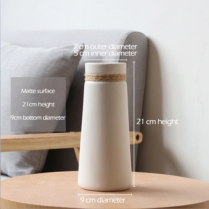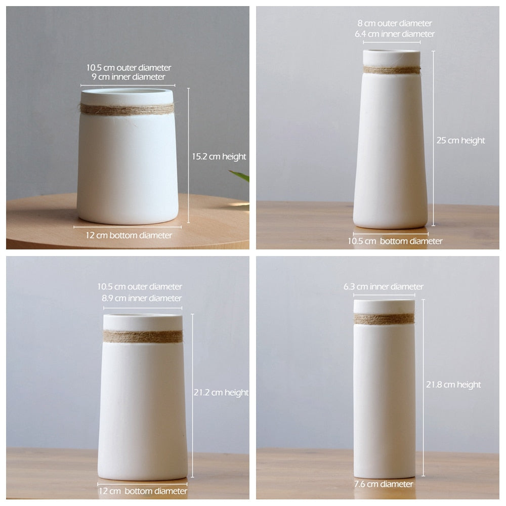 Modern Minimalist Flower Vase White Ceramic Matte Vase with Hemp Rope for Dried Flower Centerpiece Crafts Home Table Decoration