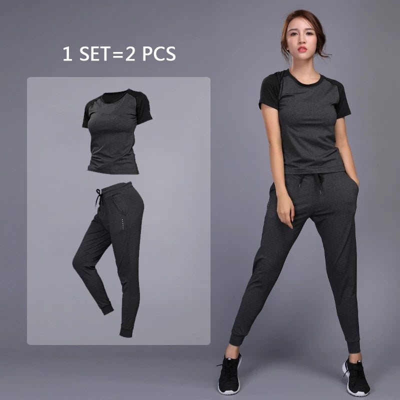 New Women's Sportswear For Yoga Sets Jogging Clothes Gym Workout Fitness Training Sports T-Shirts Running Pants Leggings Suit