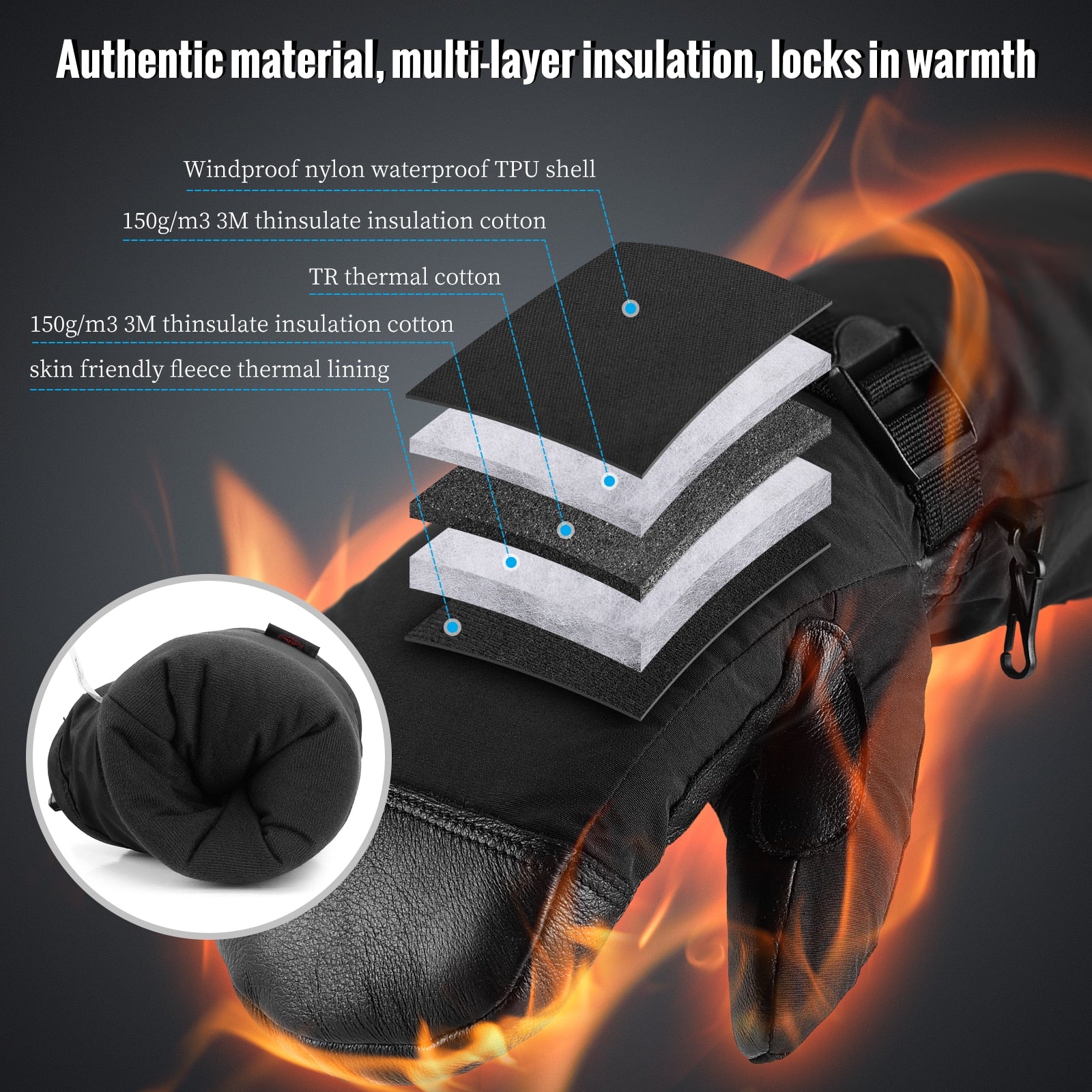 OZERO Unisex Winter Snowboard Ski Gloves Non-slip Touch Screen outdoor Sports Waterproof Motorcycle Cycling Warm Snow Gloves