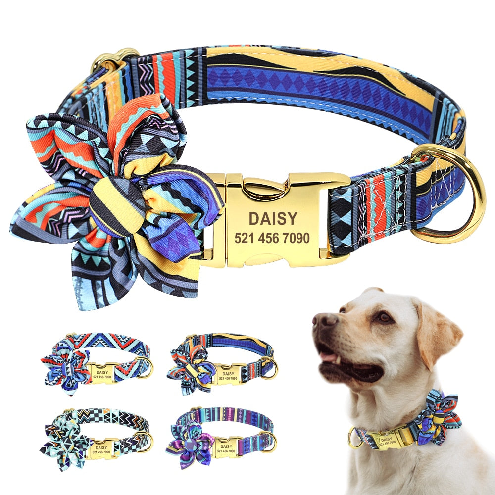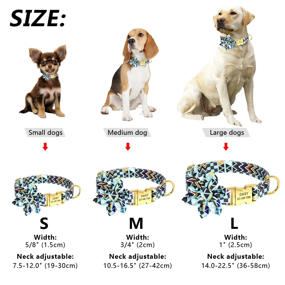 Personalized Dog Collar Nylon Pet ID Collars With Customized Tag Buckle Flower Accessories For Small Medium Large Dogs Bulldog
