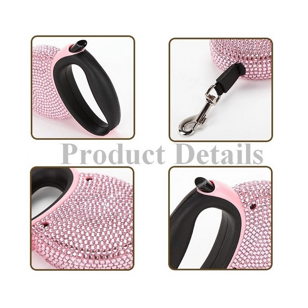 Pet Retractable Leash With Rhinestone Bling Crystal Cat Puppy Dog Lead Pink Blue 3M Flat Line Drop Shipping