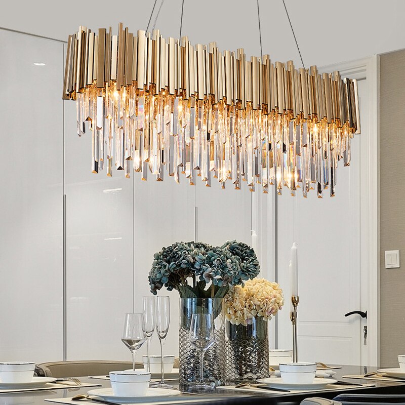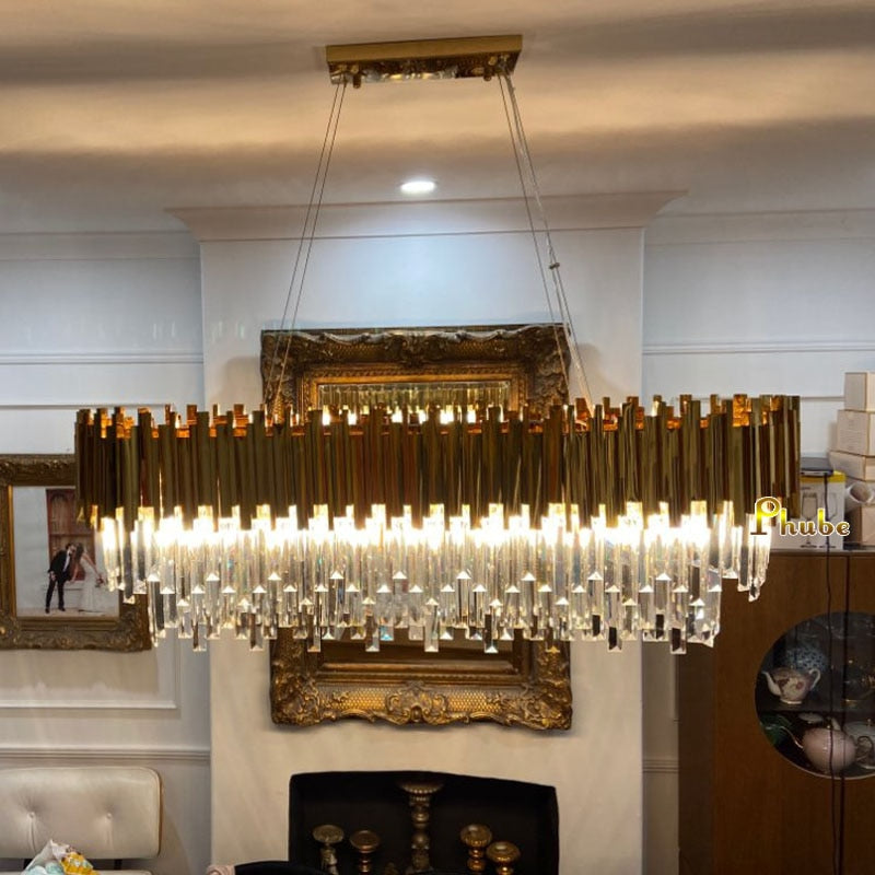 Phube Lighting Modern Crystal Chandelier Luxury Oval Gold Hanging Light Fixtures Dining Room Suspension LED Lustres