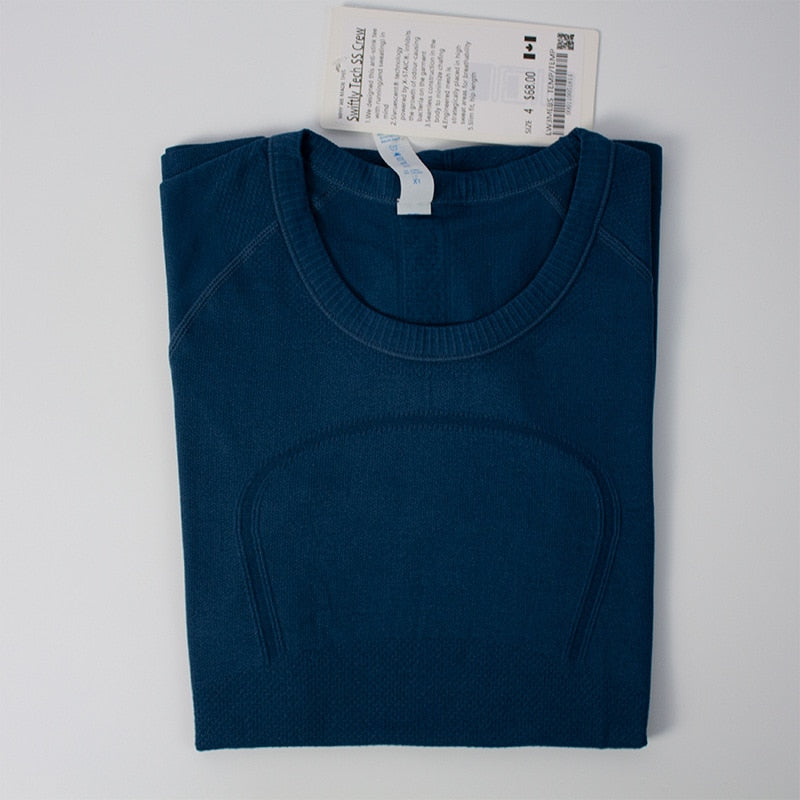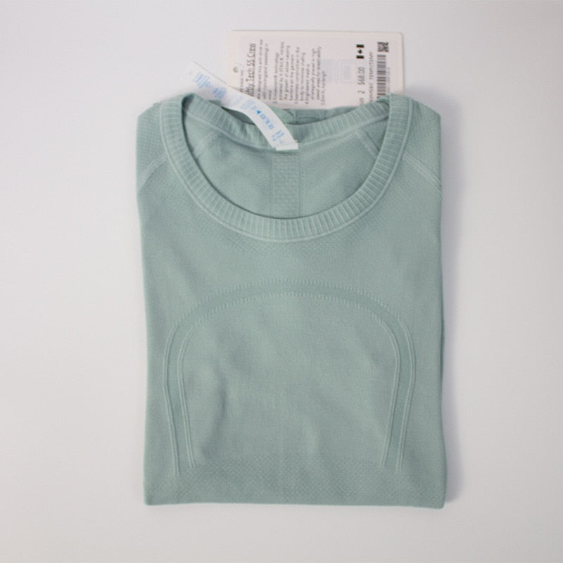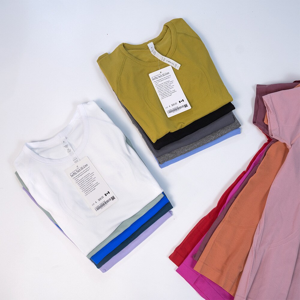 Swiftly Tech With Logo Women Short Sleeve Yoga T-Shirts Summer Seamelss Sports Tee Running Slim Gym Blouse Workout Clothes