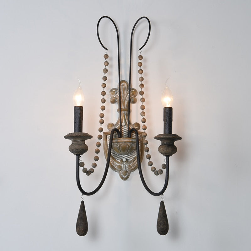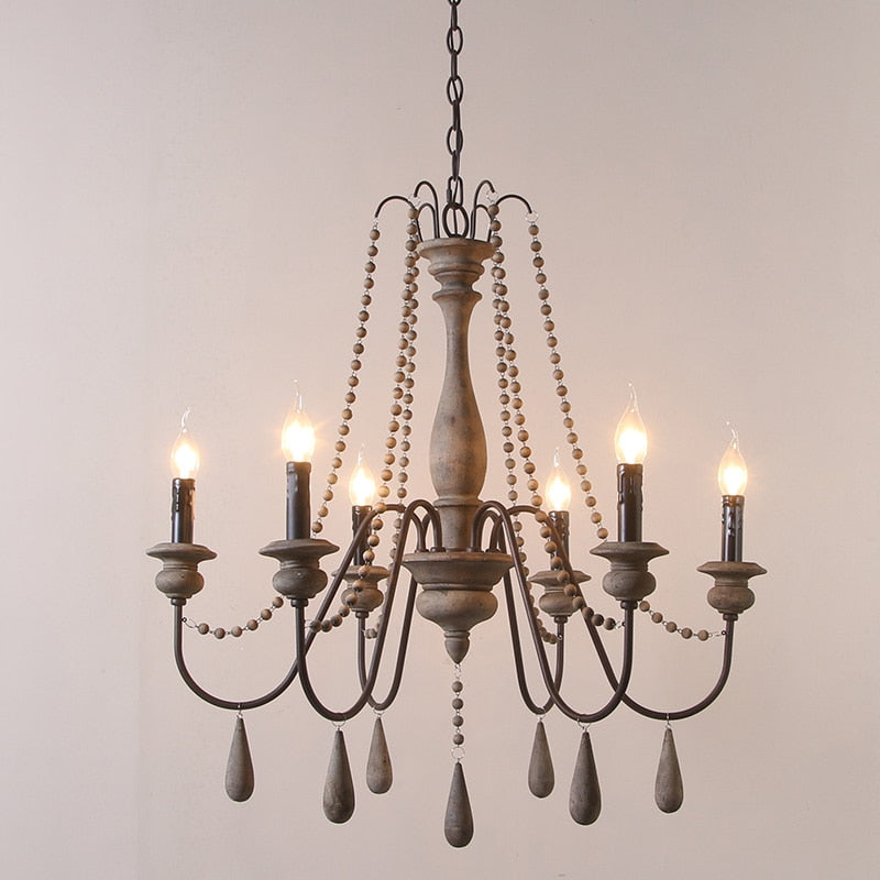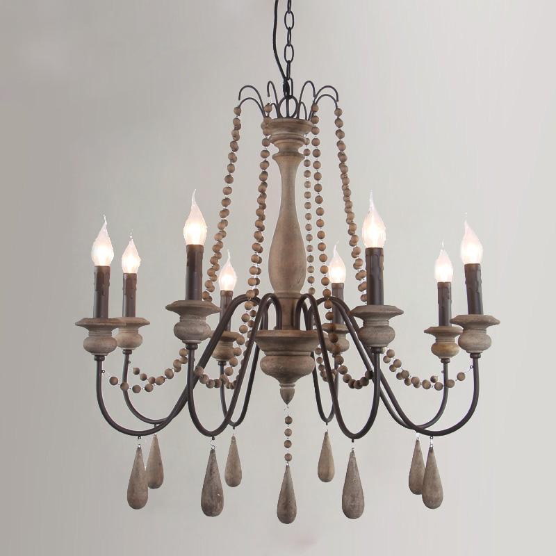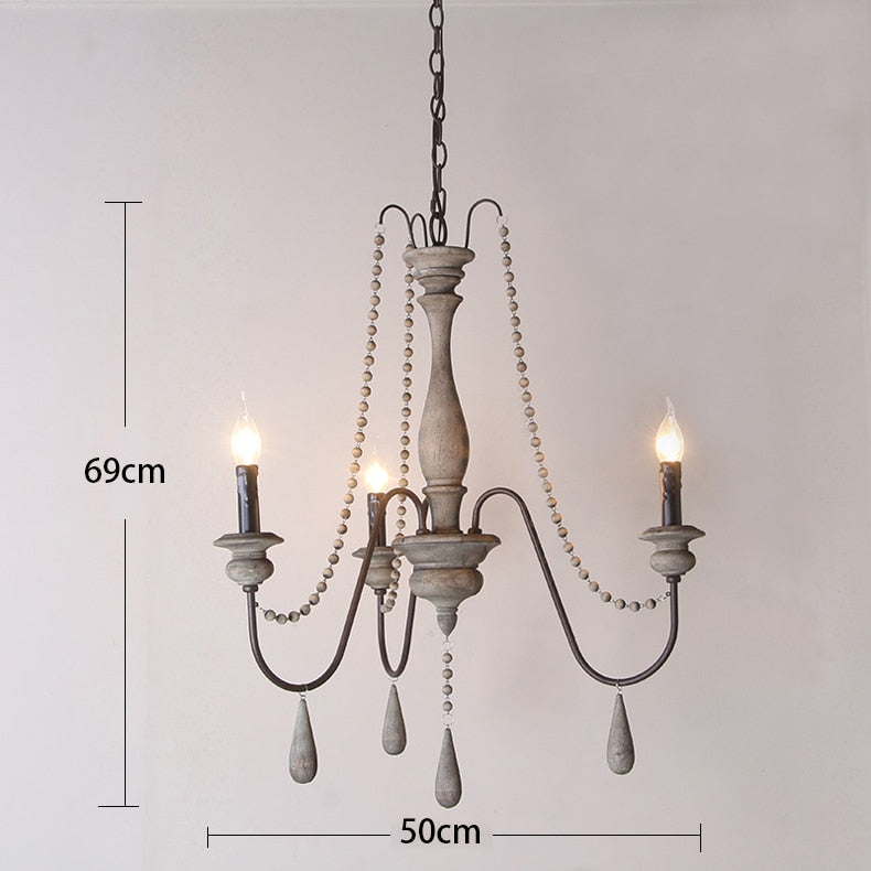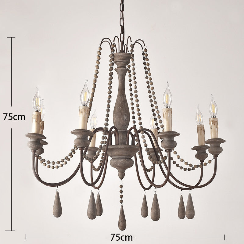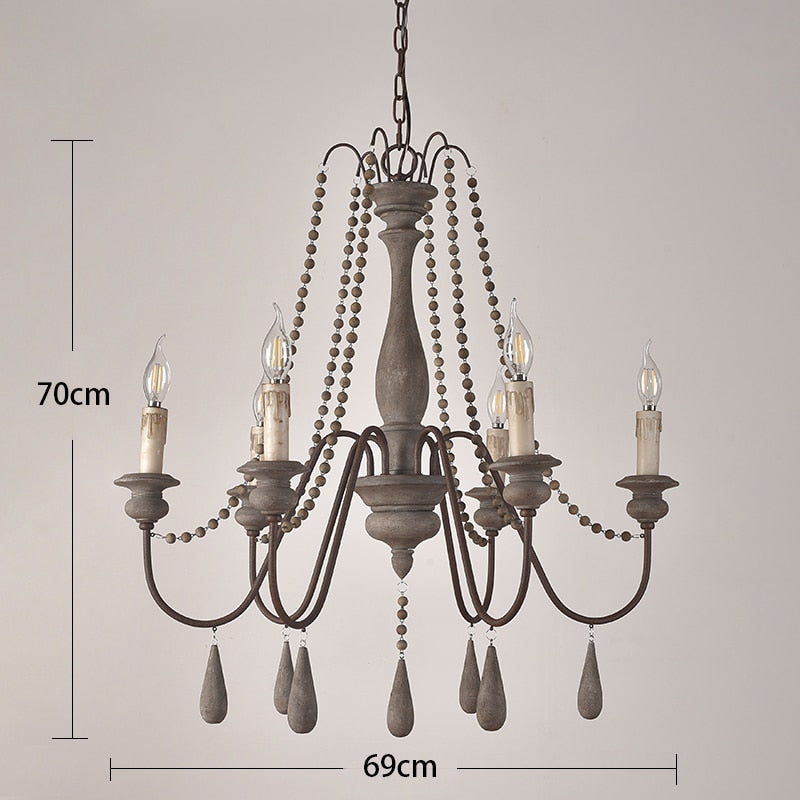 Vintage Chandelier Wood Bead Pendant Living Room Bedroom Kitchen Retro Farmhouse Chandeliers Indoor Lighting Lamp Light Fixtures