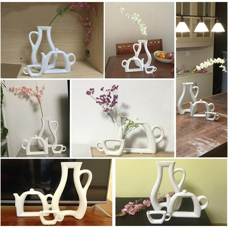 White Ceramic Flower Pot Fashion Modern Style Wedding Decorative Vase Home Decoration Accessories Tabletop Teapot Vase Planter