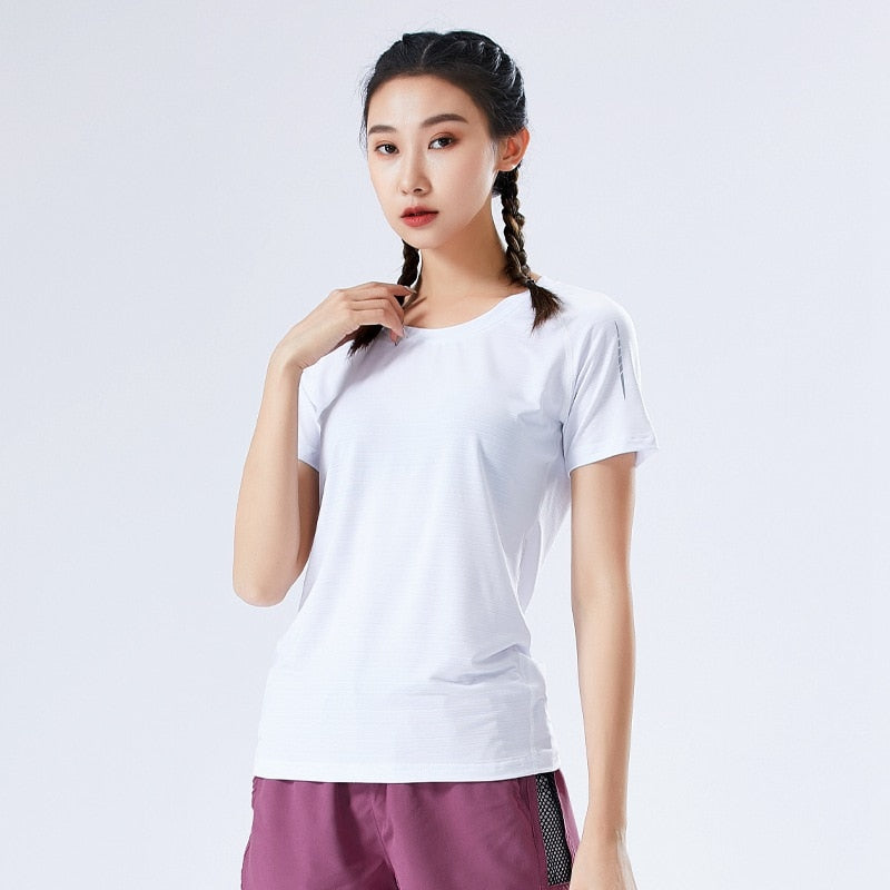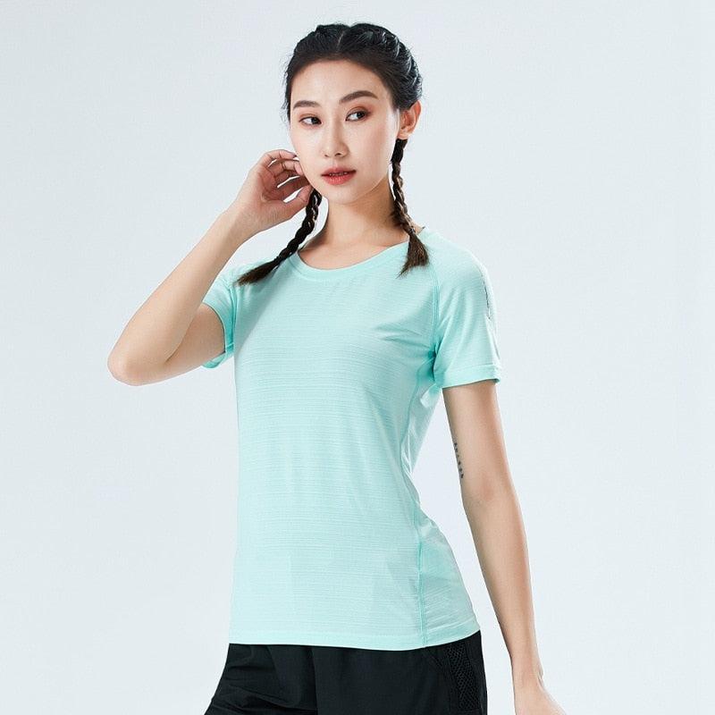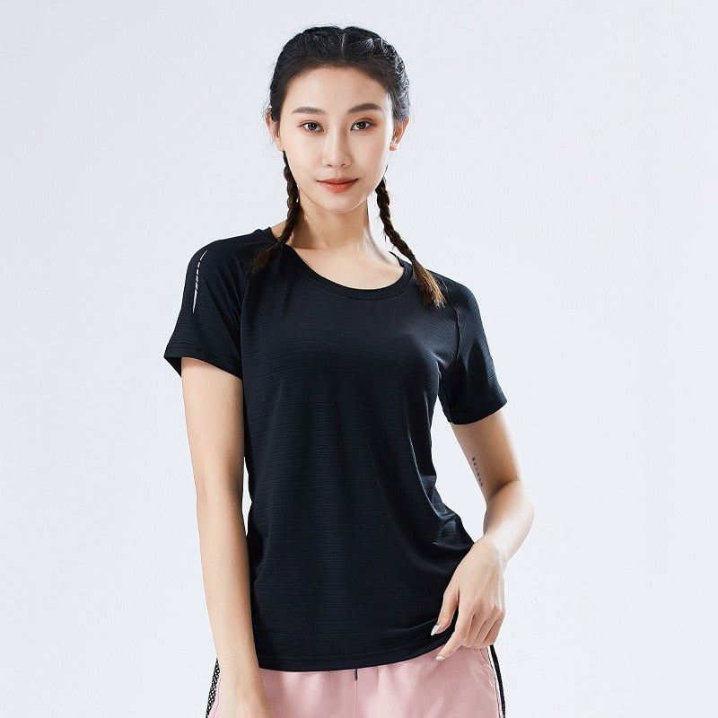 Women Running T Shirt Sport Breathable Quick Dry Yoga Short Sleeve Loose Jogging Training Sportswear Top Gym Fitness Tee